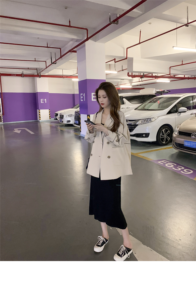 トップ ワンピース エパールの小さいスーツの女性春秋2020新型の復古イギリス風の中で長いネットの赤い小さいスーツの女性の薄いタイプの気質のスーツの上着のオーバーのアンズ色S
