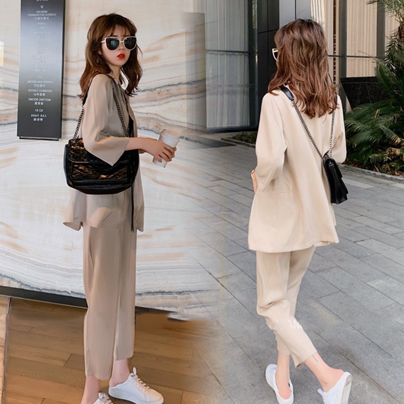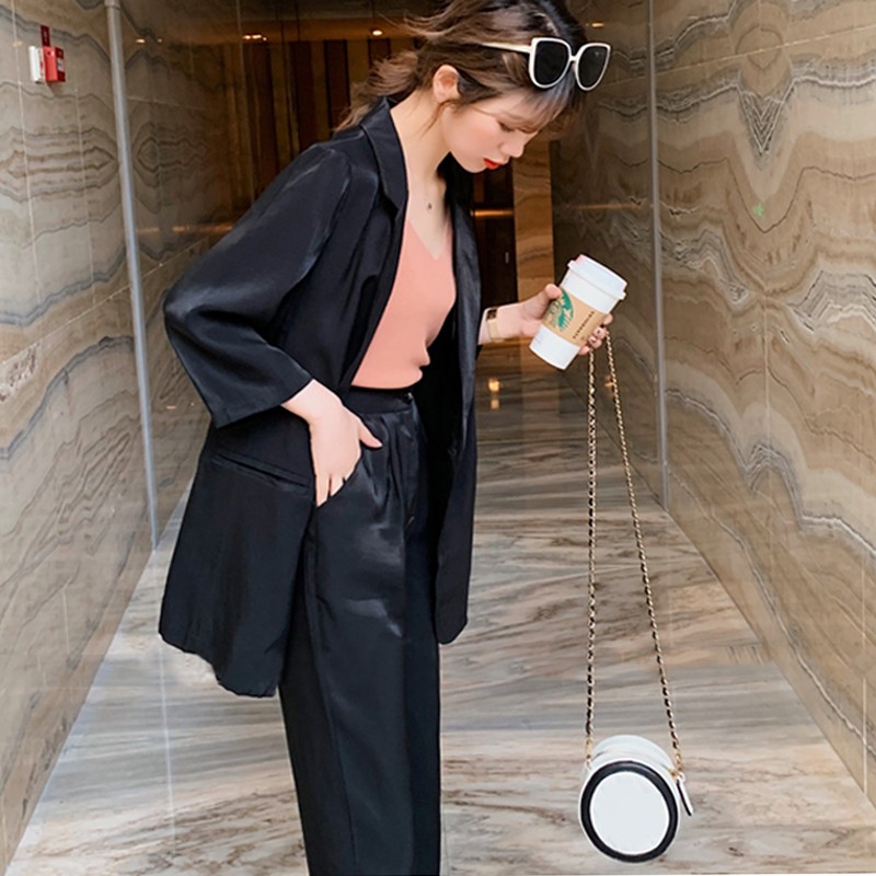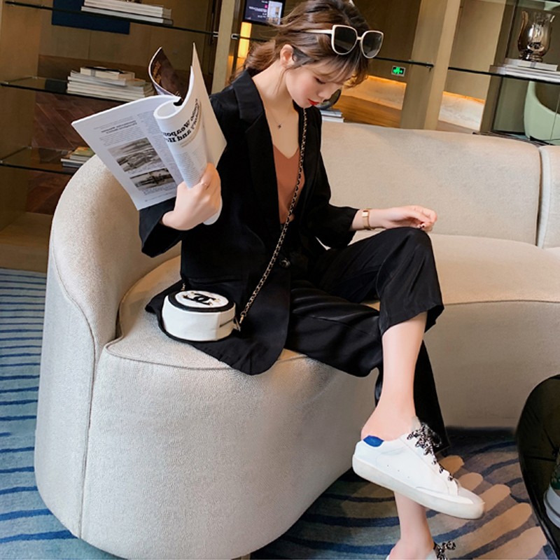エパールの小さいスーツの女性の2つのセットは、2020年の春と秋には、新しい女性の雰囲気を着て、軽熟風の韓国語バージョンのスーツを着て、小さなスタイルのフライストリートの2つのスーツ黒のスーツ+ズボンXL