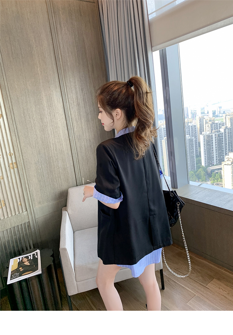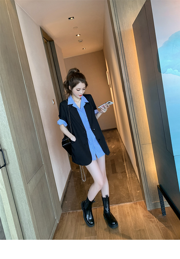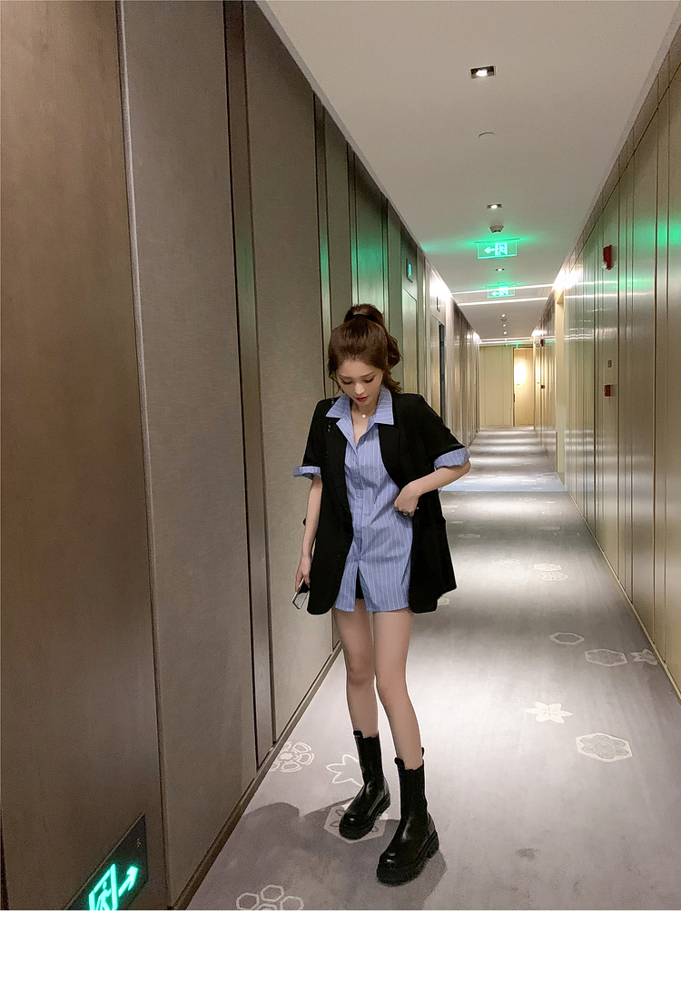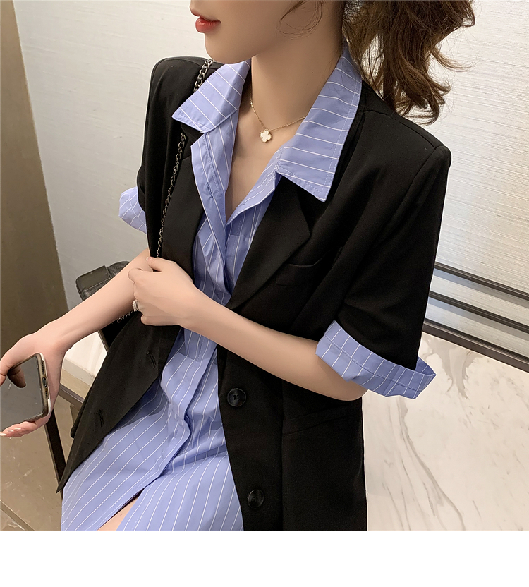 | 商品名 | エメラルドシャツの雰囲気女神様のスーツ夏2020新型ブラックスーツ薄いジャケットにストライプの半袖シャツの二点セット(シャツ+スーツ)M |