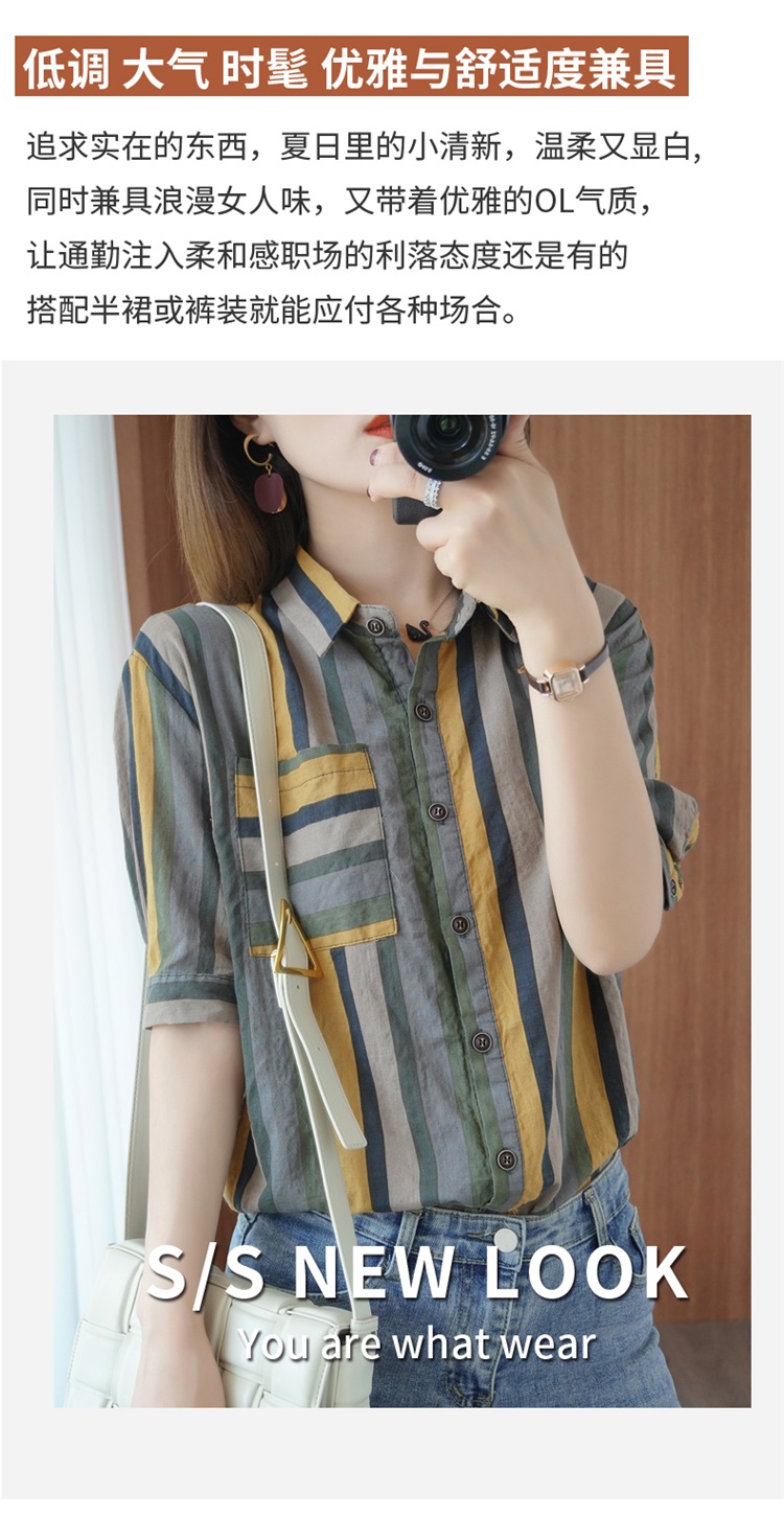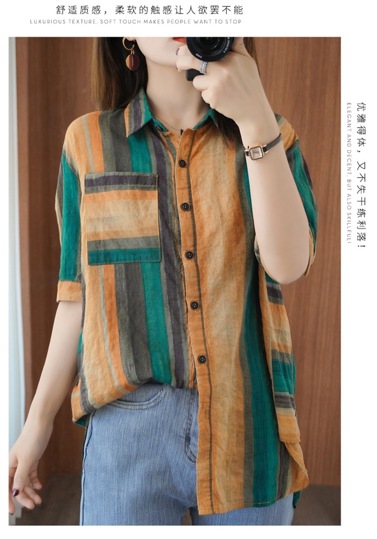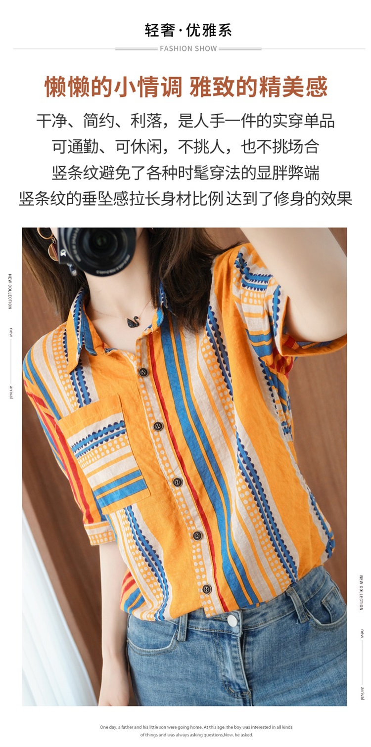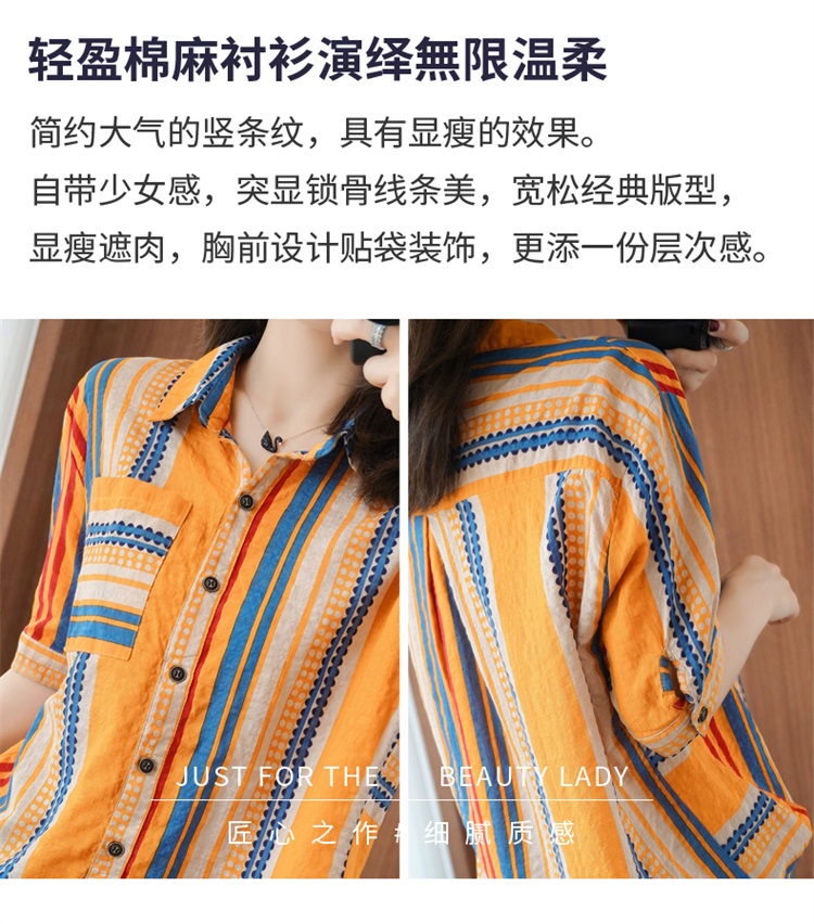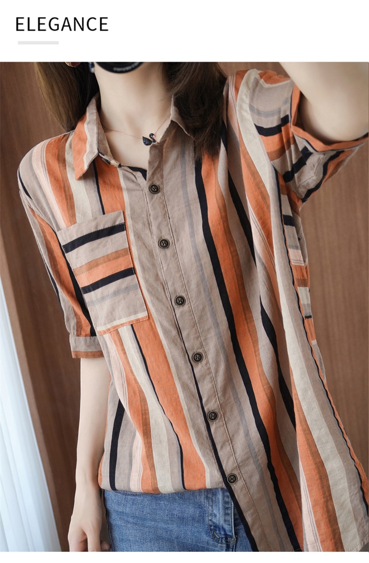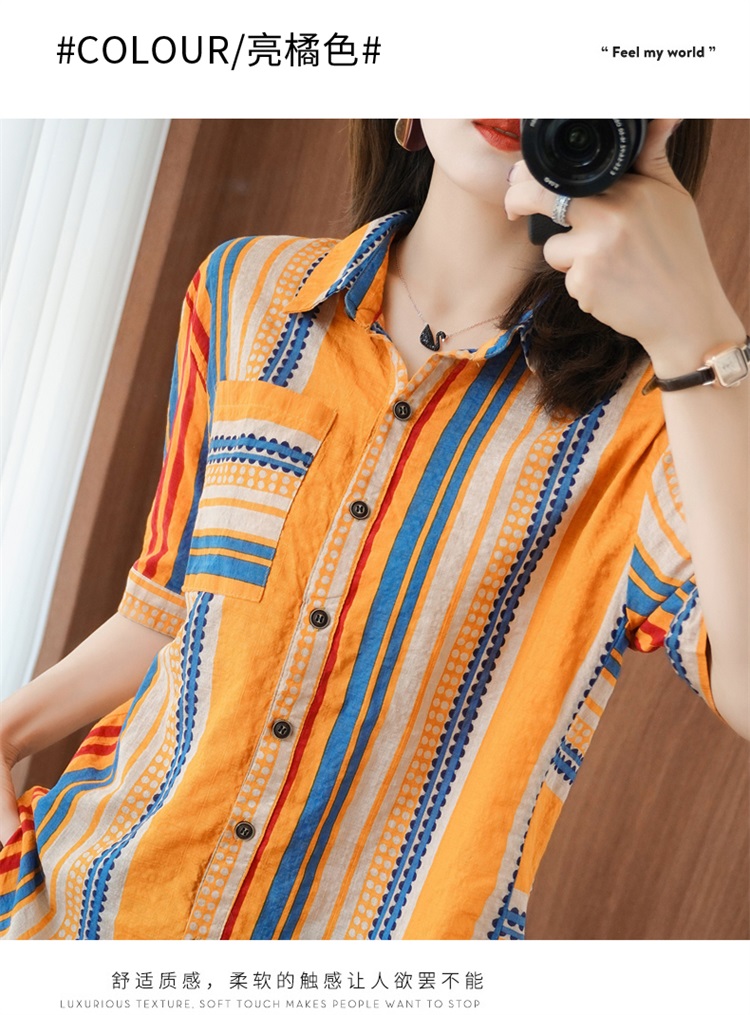 | 商品名 | エパールブラウス女性2020年新型綿麻ストライプシャツ女性デザイン感小大衆軽熟夏薄い縦縞半袖オレンジベージュ3 XL |