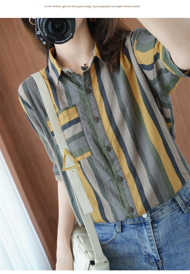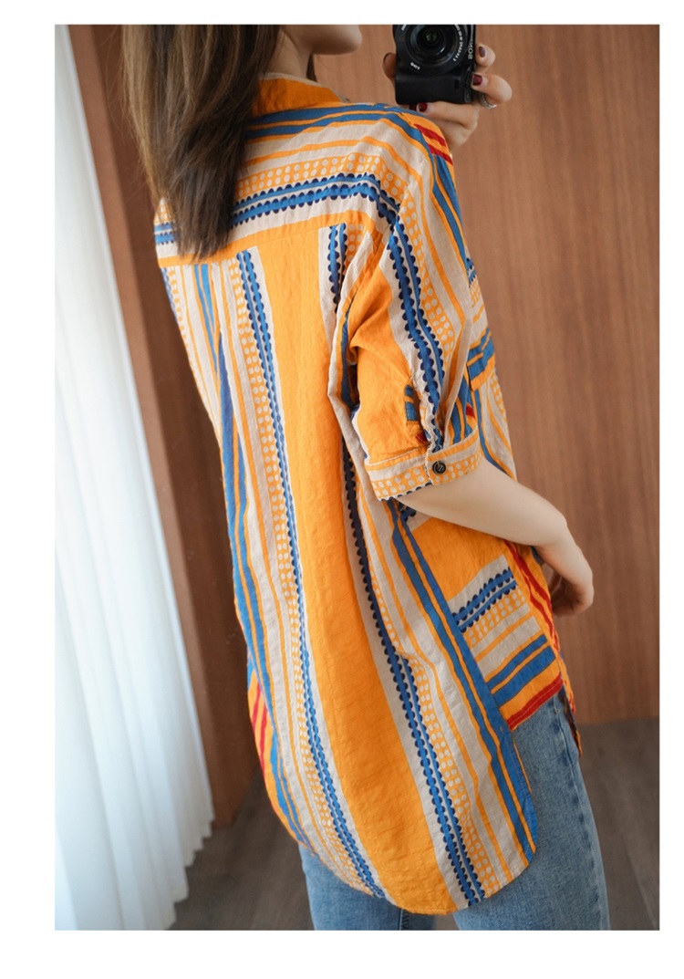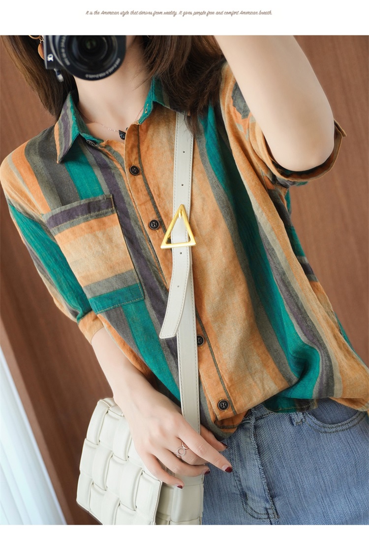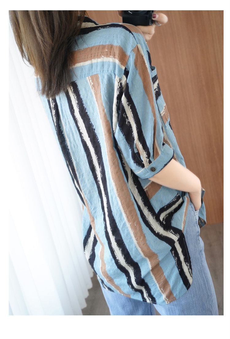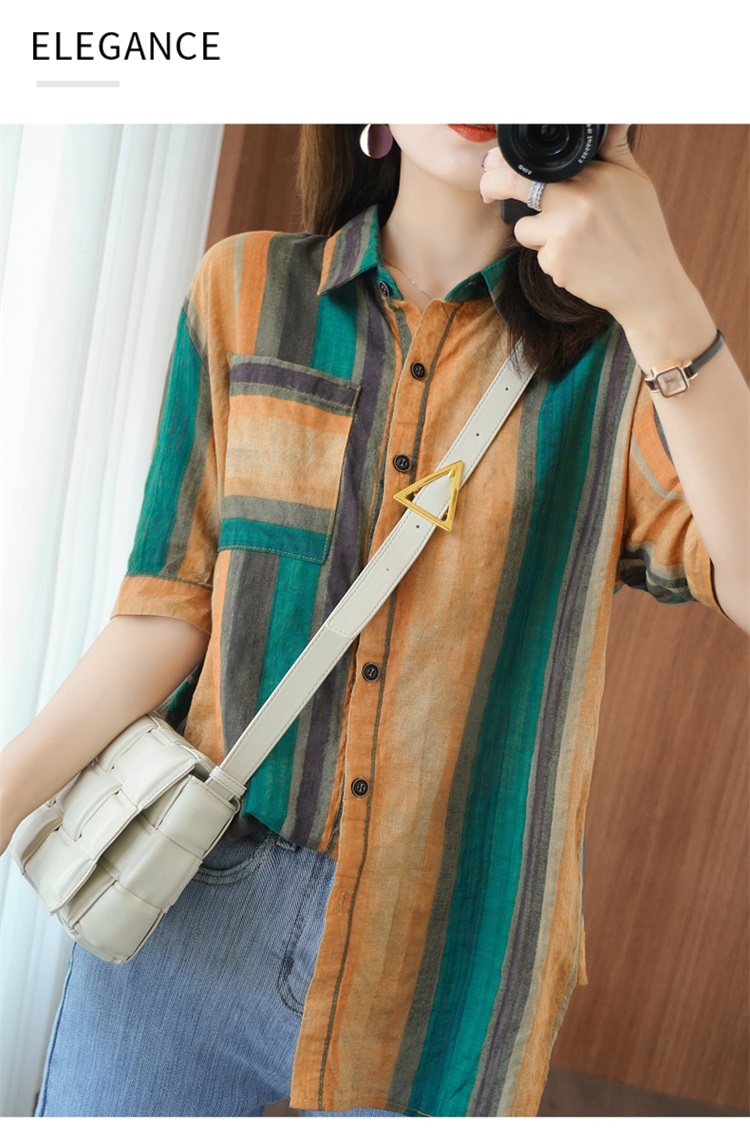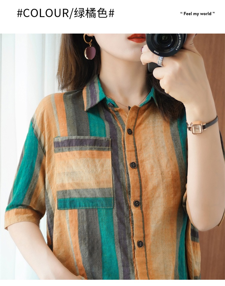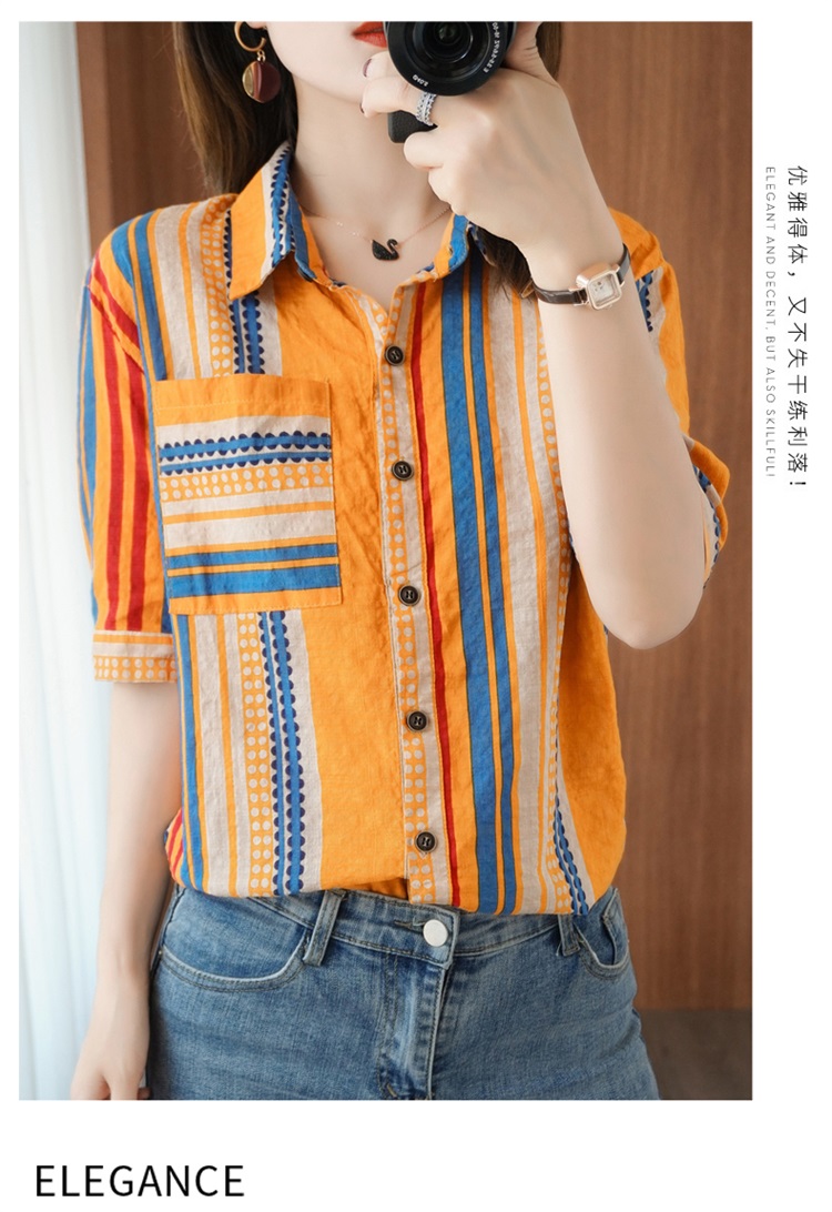 | 商品名 | エパールブラウス女性2020年新型綿麻ストライプシャツ女性デザイン感小大衆軽熟夏薄い縦縞半袖オレンジベージュ3 XL |