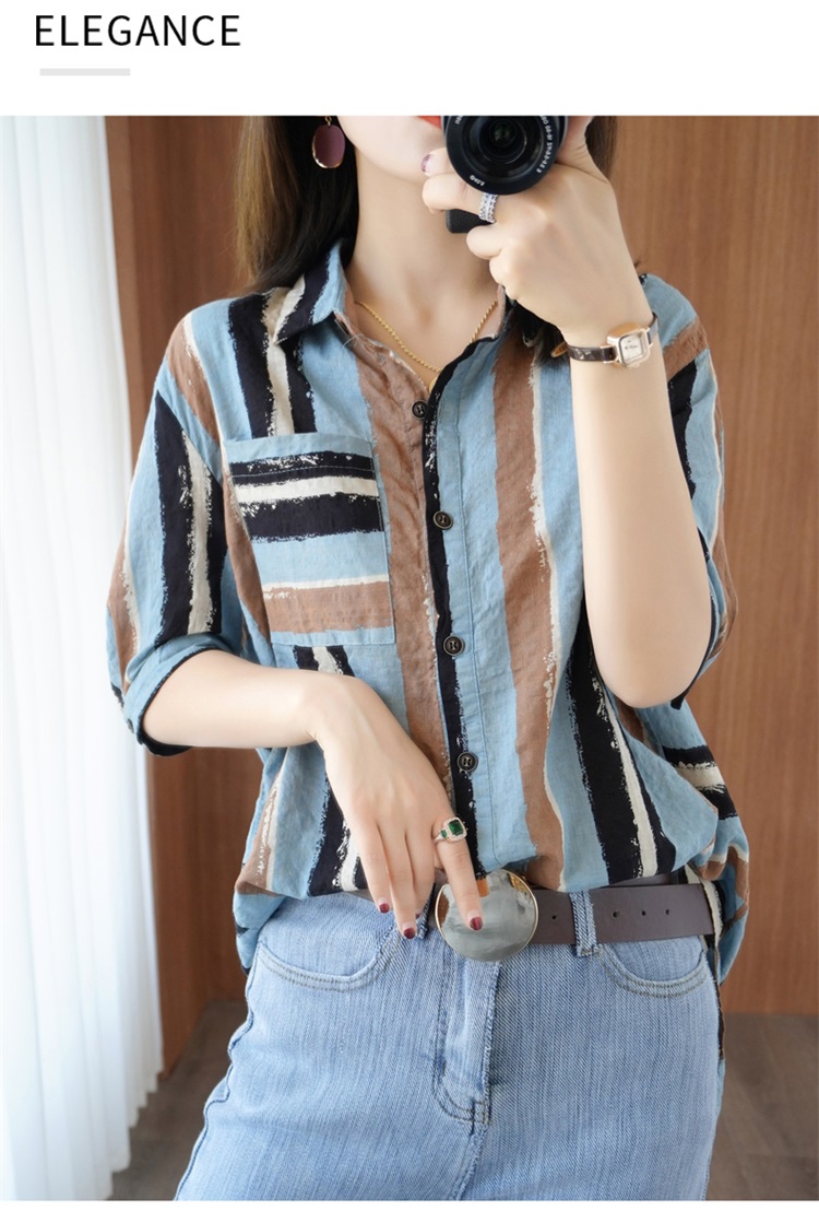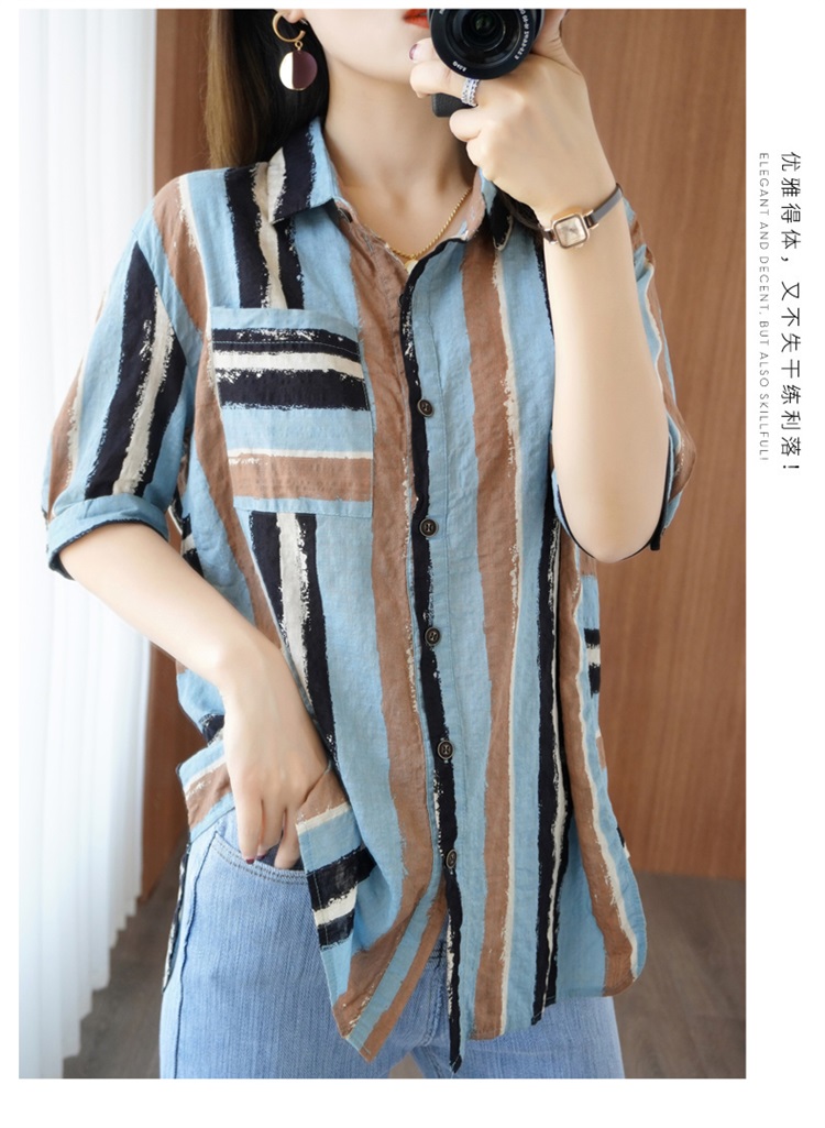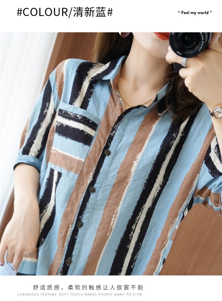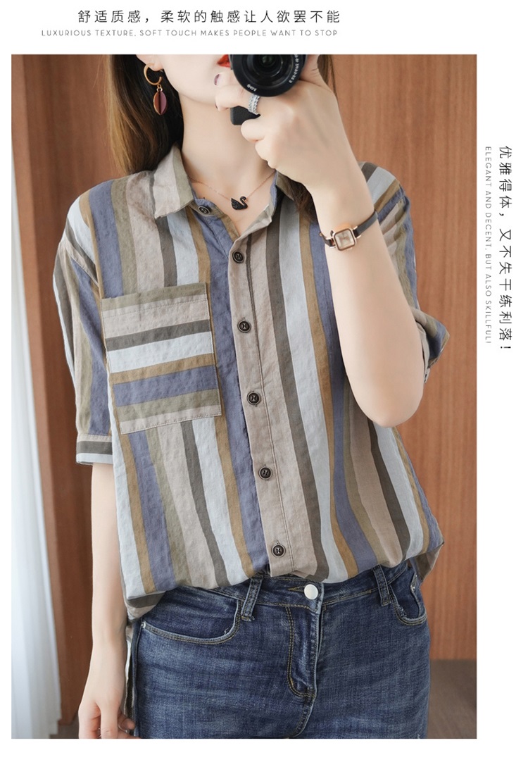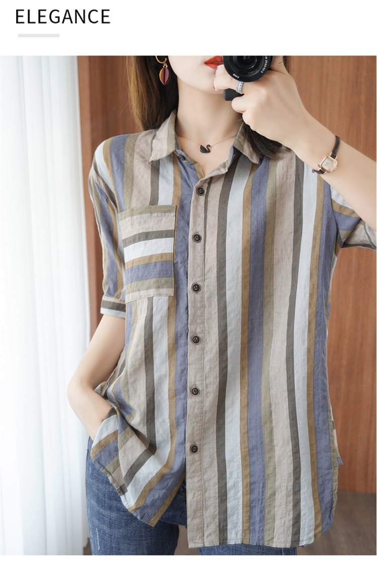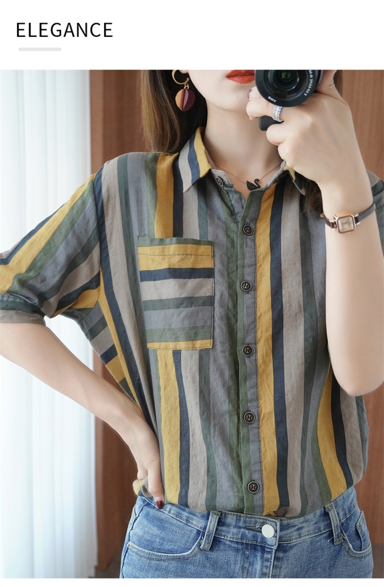 | 商品名 | エパールブラウス女性2020年新型綿麻ストライプシャツ女性デザイン感小大衆軽熟夏薄い縦縞半袖オレンジベージュ3 XL |