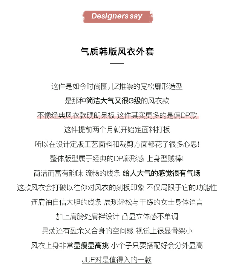 | 流行の元素 | ベルト、明るい線の装飾、ポケット、バンド、ボタン |