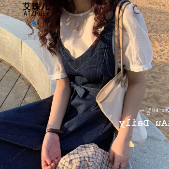 艾珠儿の大きいサイズの婦人服の夏の服の新型の2つのセットのワンピースのカウボーイの大きいサイズの太いmmの背もたれのスカートの太っている妹の明らかなやせている洋風のスーツの女性の湿っているピクチャーの色L