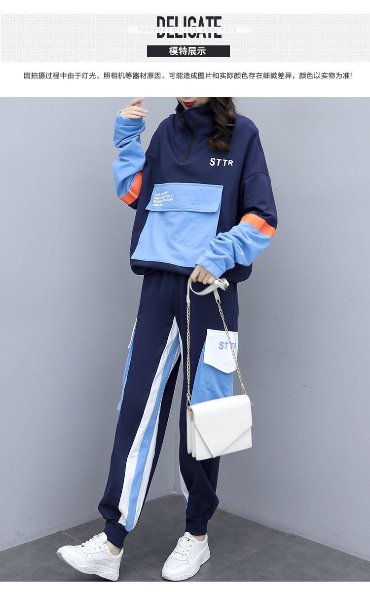 艾珠儿卫衣女性春秋太りmm新款大号女装2020秋装新款ファッションが明らかにやせていて、ゆったりとしたカジュアル服のトップカバーの上のカバーの上のズボンの2つのセットが潮青色XL【写真価格ブランドのオファー】-京東