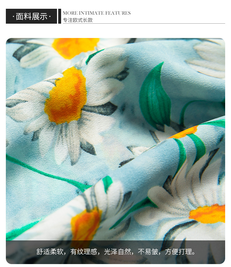帝弗潤馳2021秋装新着商品法式田園風気質上品ローリングストール調プリント修身ワンピスグリーン2 XL