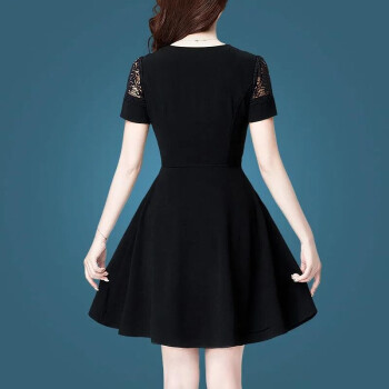 勇伦ワンピース女半袖2022夏新着商品女装时尚气质雪纺裙子中长款蕾丝夏裙 黑色 L(建议105-114斤)【图片 价格 品牌 报价】-