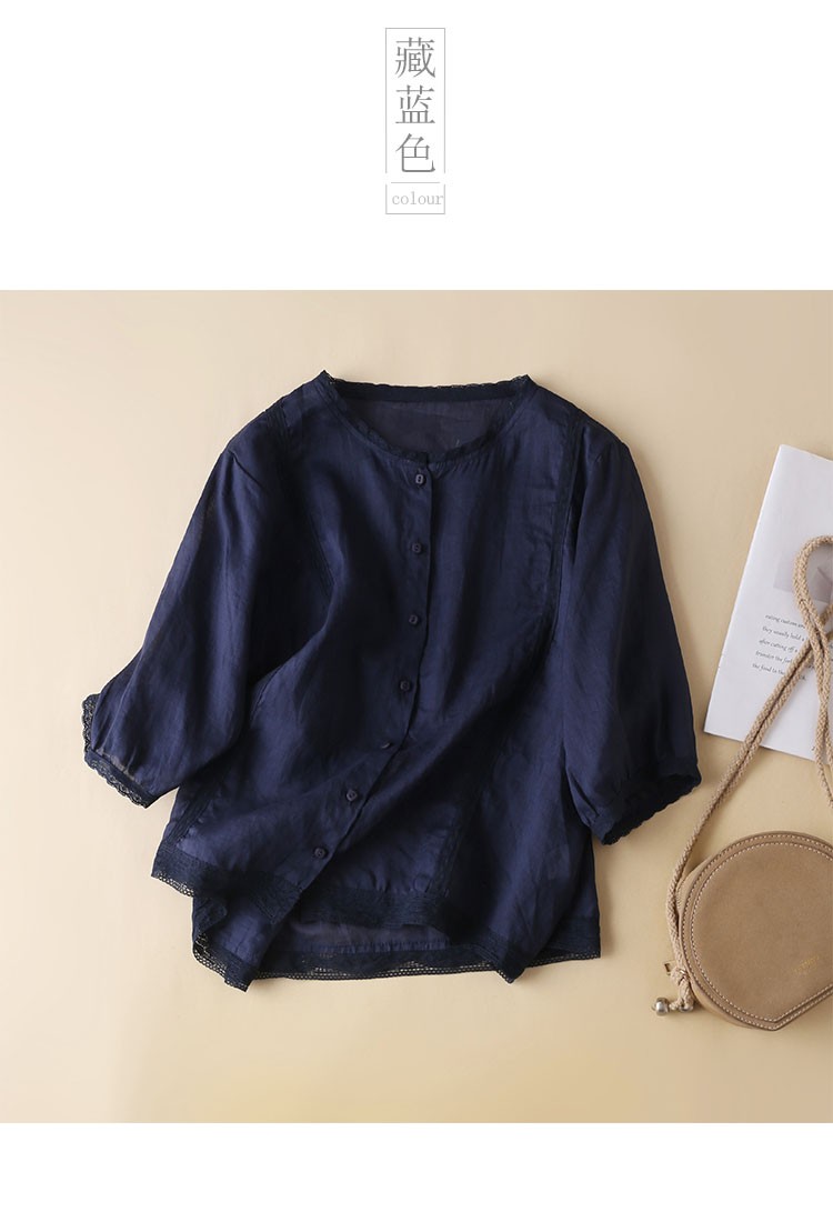 bylure简约圆领苎麻七分袖衬衫夏新着商品蕾丝拼接设计上衣女宽松棉麻Tシャツ 浅卡其色 均码【图片 价格 品牌 报价】-