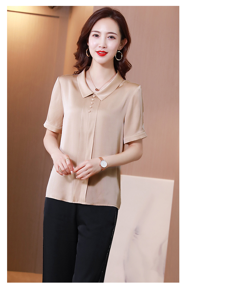 雅飞丽尔重磅真丝衬衫女半袖翻领钮扣装饰桑蚕丝上衣女士衬衣丝绸女装8818 香槟 4XL(130-150斤)