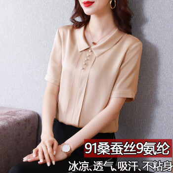 雅飞丽尔重磅真丝衬衫女半袖翻领钮扣装饰桑蚕丝上衣女士衬衣丝绸女装8818 香槟 4XL(130-150斤)【图片 价格 品牌 报价】-