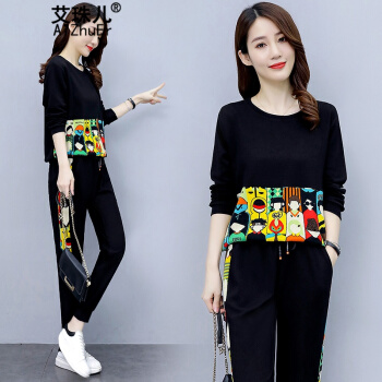 | 商品名称 | エパールガーディアン2020年秋のプリントスポーツカジュアルセット韓国版緩顕やせ洋気減齢ファッション2点セット女装ブラックS |