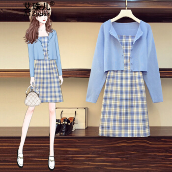 アイパールの大きいサイズの婦人服2020新型の秋は小さくて太っている妹を詰めて年齢を減らして明らかにやせて肉のスーツの洋風のワンピースの2つのセットのスーツのスカートのピクチャーの色Lを遮ります。